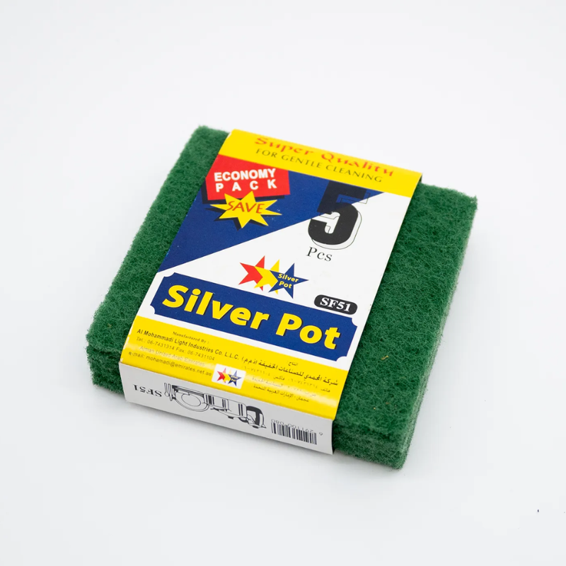 Silver Pot Scouring Pad 130x135mm Green 5pcs x 75 Pack (Pack of 360)